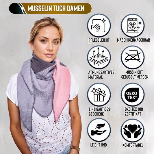 Musselin Schal Damen Dreieckig Mehrfarbig Grau-DunkelGrau-AltRosa