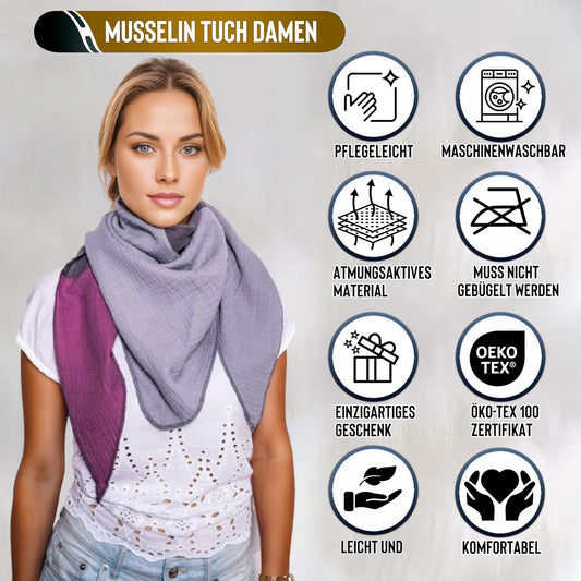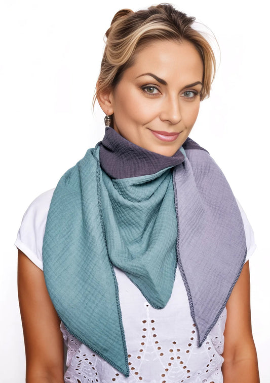 Musselin Schal Damen Dreieckig Mehrfarbig Grau-Dunkelgrau- DunkelPurple