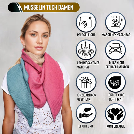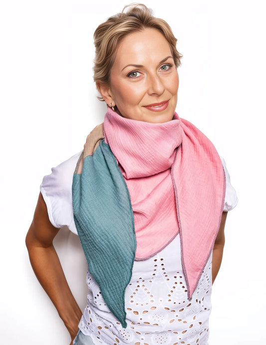 Musselin Schal Damen Dreieckig Mehrfarbig Grün-Beige-AltRosa
