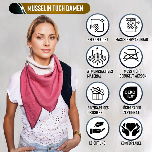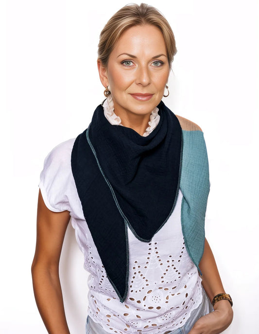 Musselin Schal Damen Dreieckig Mehrfarbig Schwarz-HellerSand-Mauve