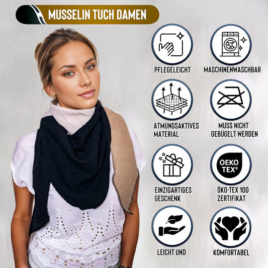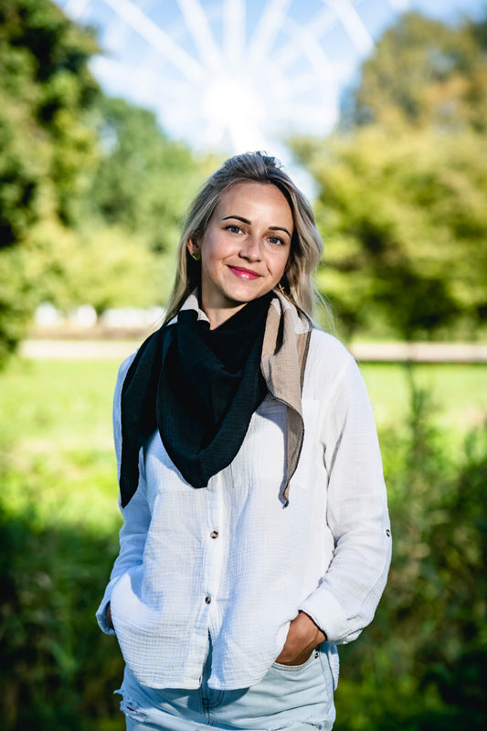 Musselin Schal Damen Dreieckig Mehrfarbig Schwarz-HellerSand-Beige