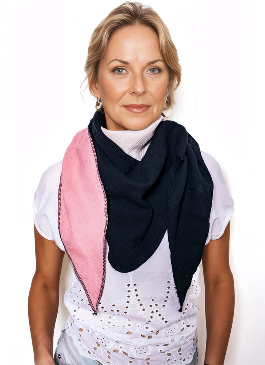 Musselin Schal Damen Dreieckig Mehrfarbig Schwarz-HellerSand-AltRosa