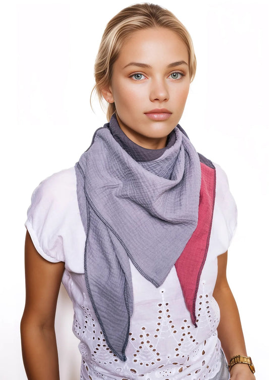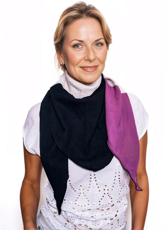 Musselin Schal Damen Dreieckig Mehrfarbig Grau-Dunkelgrau- DunkelPurple