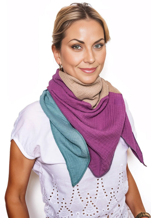 Musselin Schal Damen Dreieckig Mehrfarbig Grün-Beige-DunkelPurple