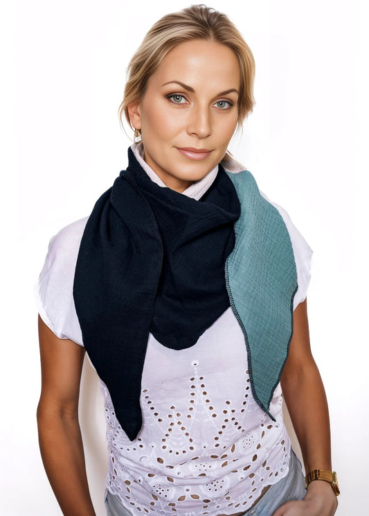 Musselin Schal Damen Dreieckig Mehrfarbig Grau-DunkelGrau-Grün