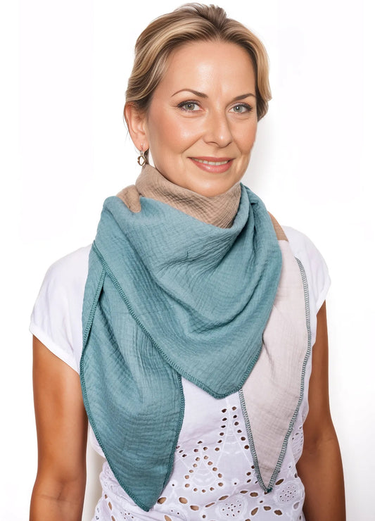 Musselin Schal Damen Dreieckig Mehrfarbig Grün-Beige-HellerSand
