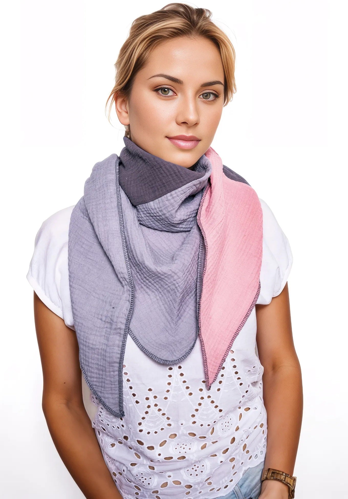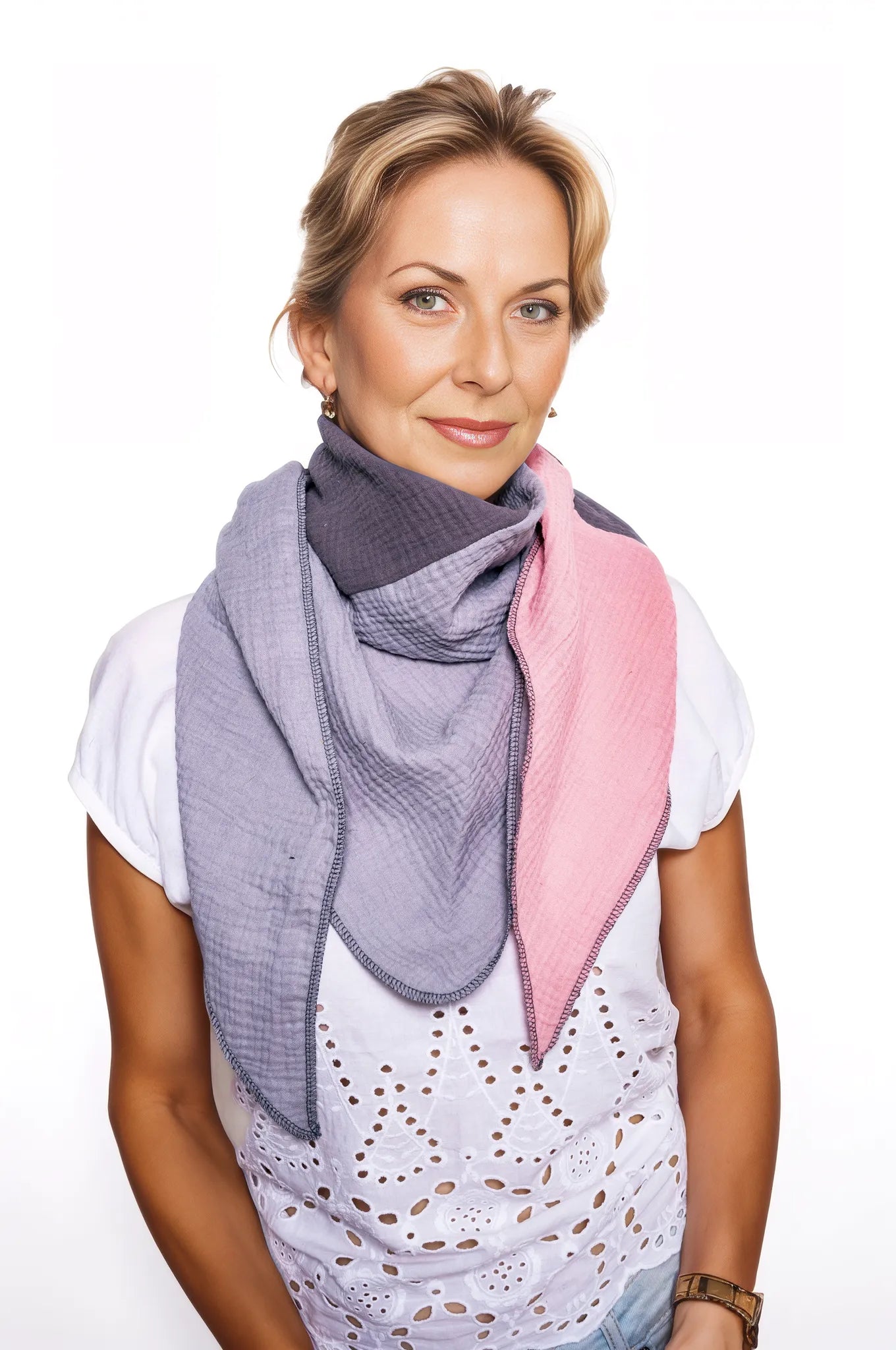 Musselin Schal Damen Dreieckig Mehrfarbig Grau-DunkelGrau-AltRosa