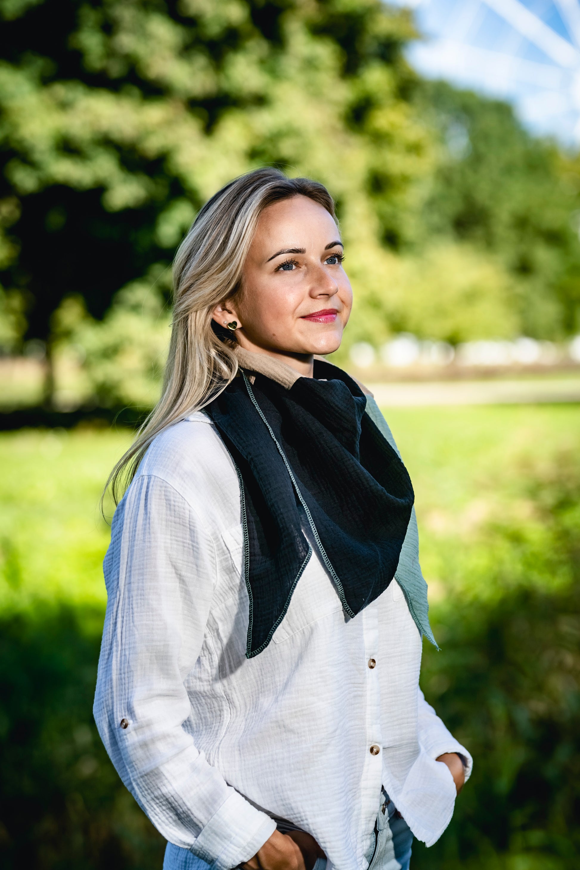 🪶 LEICHT UND BEQUEM - Musselin Tuch Damen besteht ausschließlich aus 100 % hochwertigem Doppelgaze-Baumwollstoff (Musselin) . Musselin Halstuch Damen muss nicht gebügelt werden, ist einfach zu reinigen und fühlt sich unglaublich weich auf der Haut an.