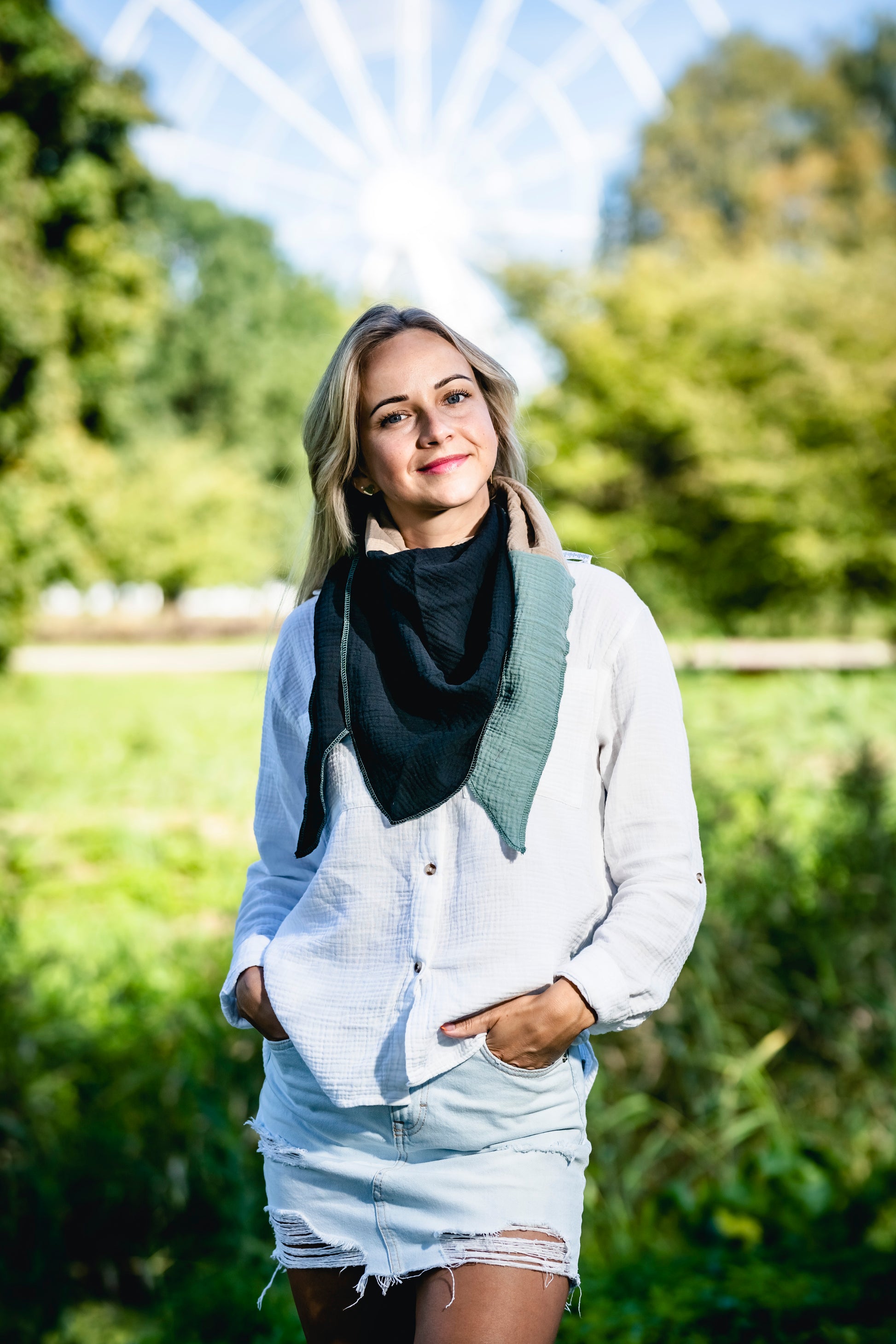 🪶 LEICHT UND BEQUEM - Musselin Tuch Damen besteht ausschließlich aus 100 % hochwertigem Doppelgaze-Baumwollstoff (Musselin) . Musselin Halstuch Damen muss nicht gebügelt werden, ist einfach zu reinigen und fühlt sich unglaublich weich auf der Haut an.