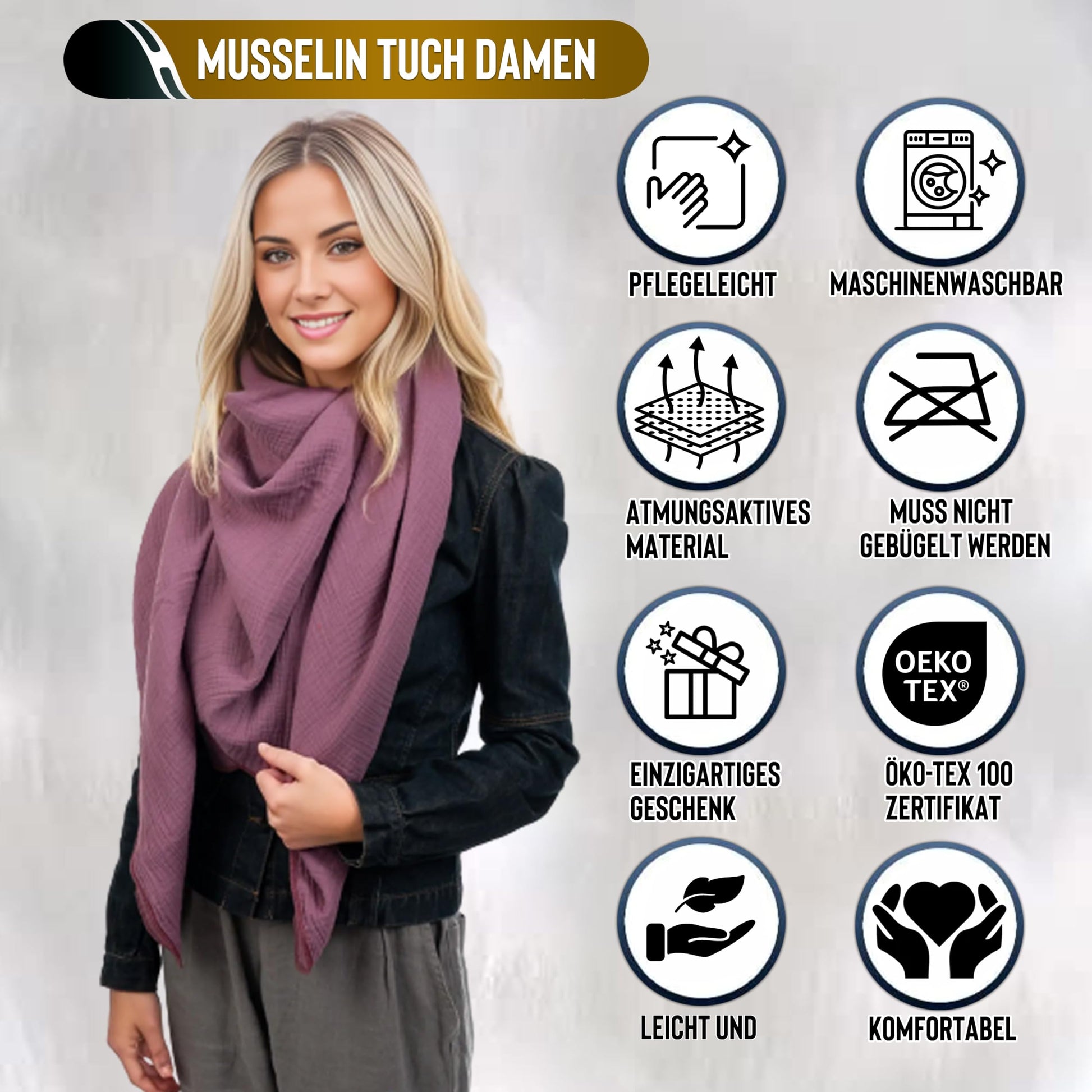 🪶 LEICHT UND BEQUEM - Musselin Tuch Damen besteht ausschließlich aus 100 % hochwertigem Doppelgaze-Baumwollstoff (Musselin) . Musselin Halstuch Damen muss nicht gebügelt werden, ist einfach zu reinigen und fühlt sich unglaublich weich auf der Haut an.