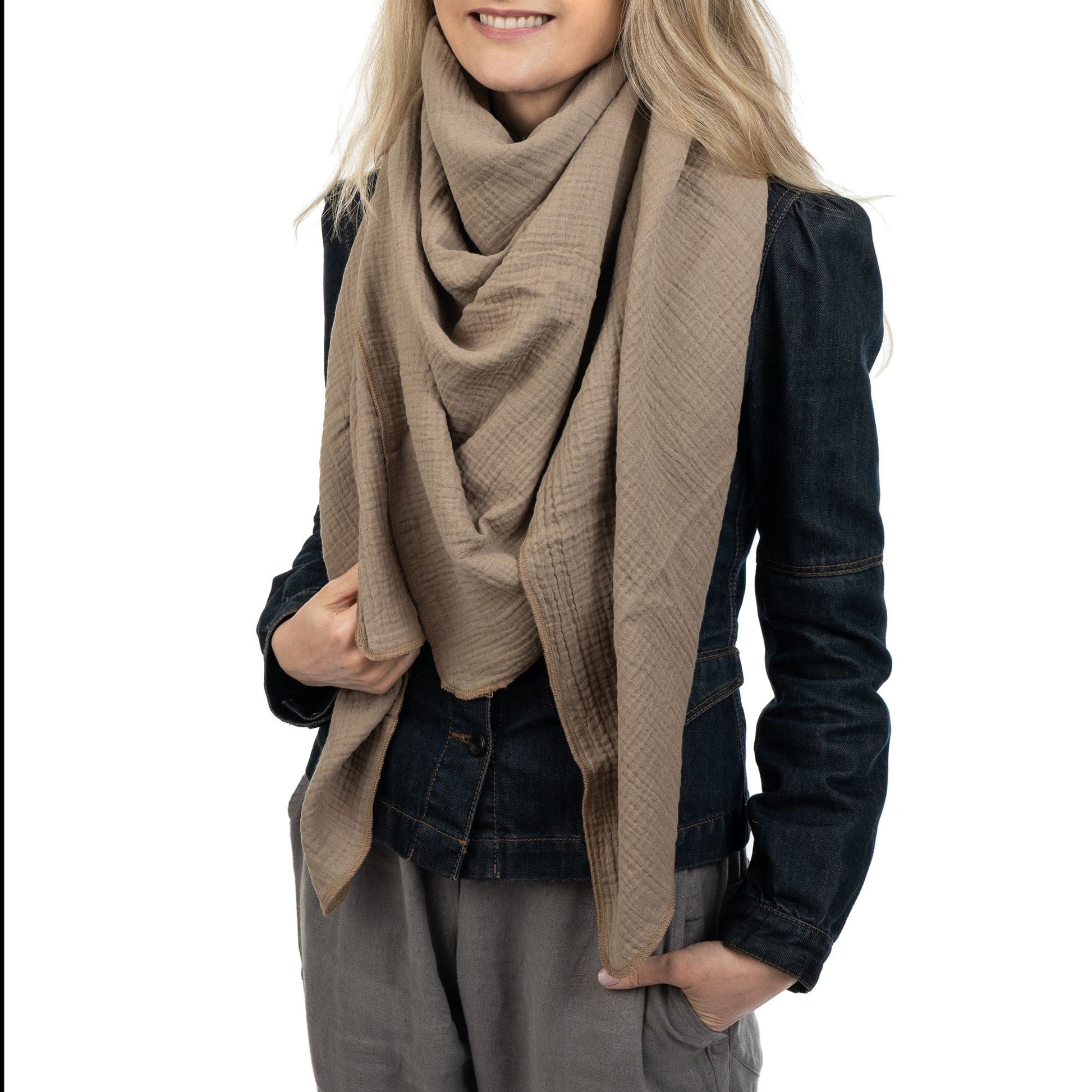 🪶 LEICHT UND BEQUEM - Musselin Tuch Damen besteht ausschließlich aus 100 % hochwertigem Doppelgaze-Baumwollstoff (Musselin) . Musselin Halstuch Damen muss nicht gebügelt werden, ist einfach zu reinigen und fühlt sich unglaublich weich auf der Haut an.